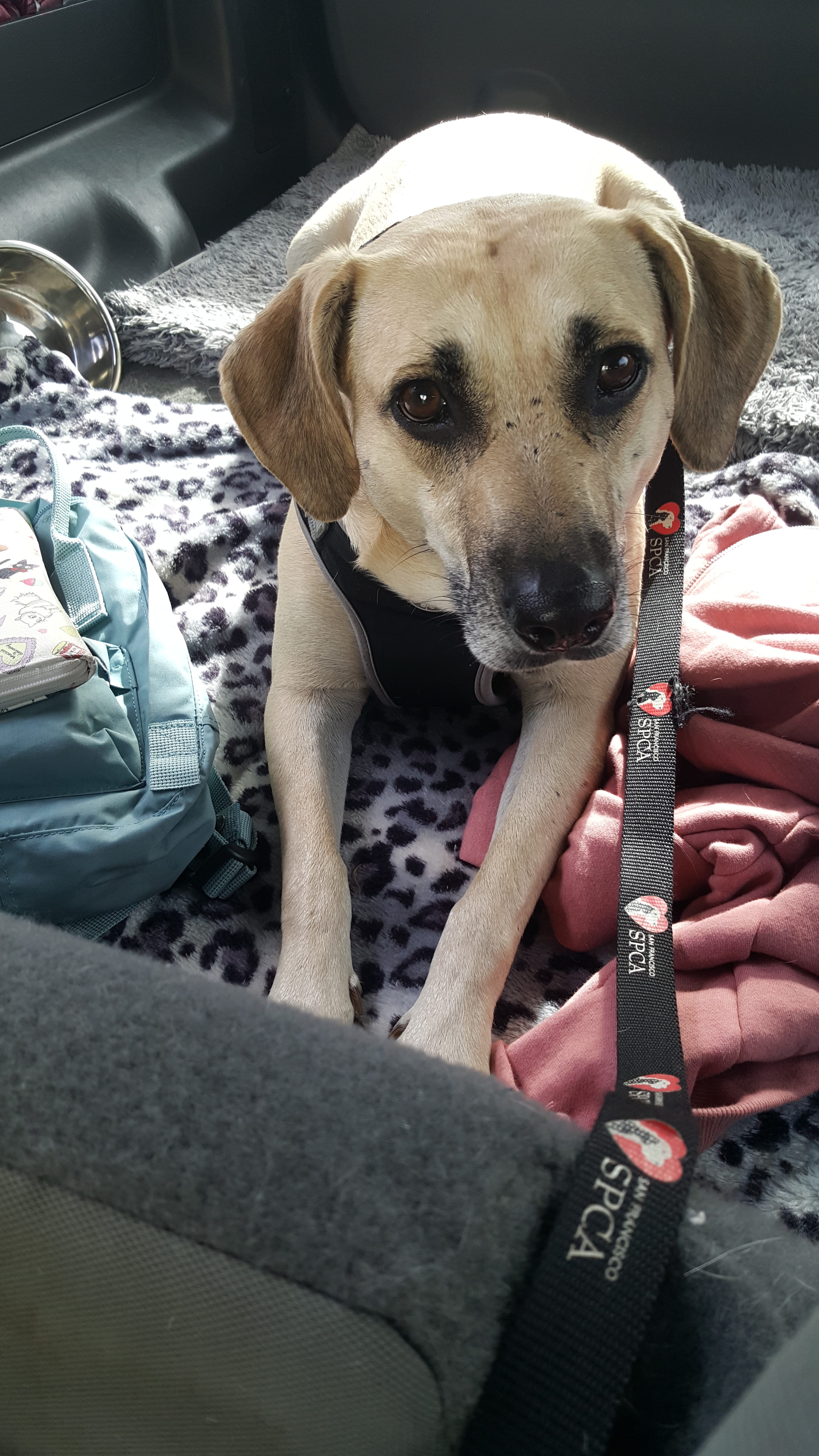 We met Sunflower (also known as Sunny) on March 31, 2018 at the SF SPCA. I had seen her online on the 28th, since my family and I were looking for a new dog to rescue after we lost our last dog Cherry. She was adorable from her photo, but she had some scars so I knew she needed a loving home. I convinced my mom to come down and “just look”, and within 5 minutes of meeting her she said, “Don’t worry baby, you’re coming home with us.”